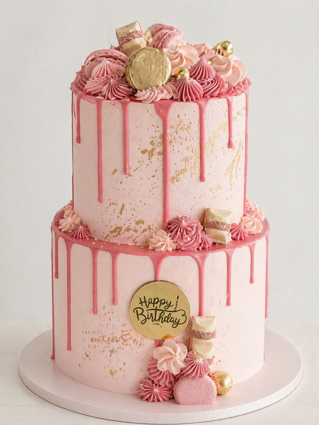 Indulge in our designer birthday cake, featuring a rich chocolate drip cascading over smooth buttercream, topped with luxury chocolate pieces. Handcrafted in Bellshill, it’s a bespoke treat perfect for celebrations across North Lanarkshire. Order yours today! Also available dairy-free, vegan, and gluten-free.