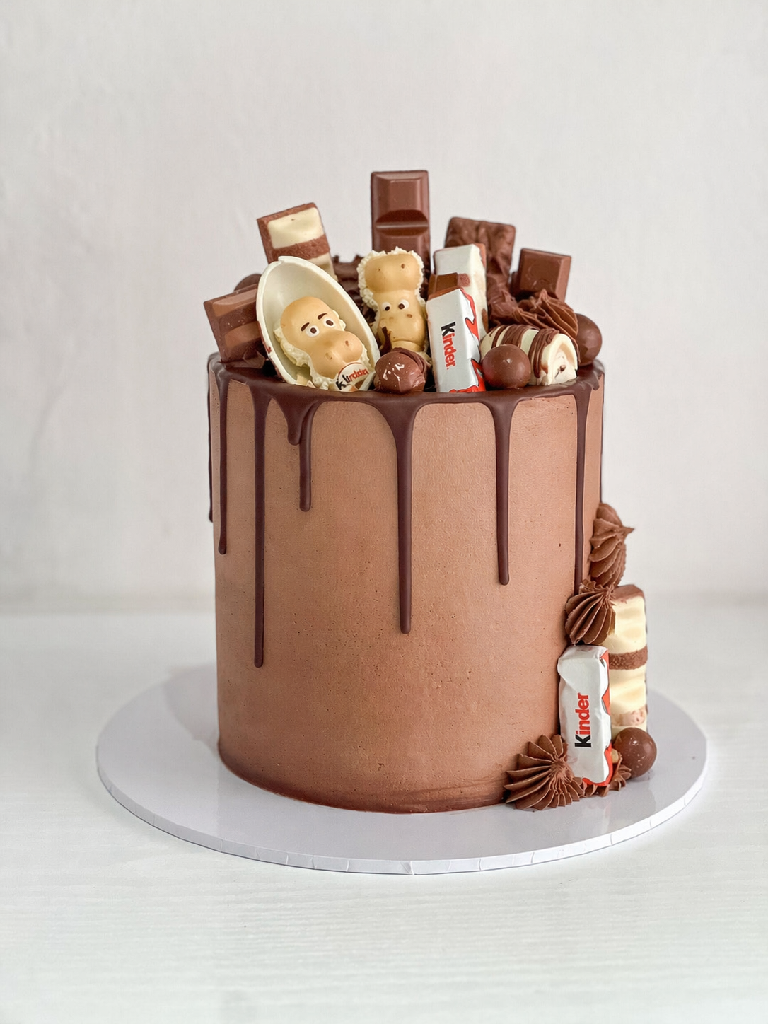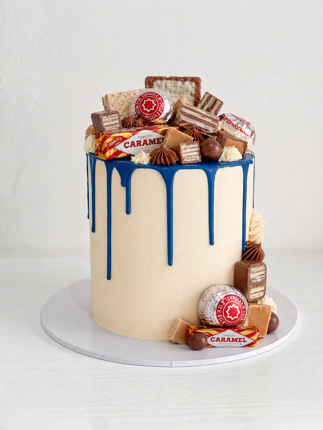 Create your perfect celebration cake with our customisable Loaded Drip Cake, made fresh to order in Glasgow and Lanarkshire. Choose your favourite topping style from classic chocolate, Kinder, luxury chocolates, sweets or Scottish favourites, all beautifully finished on a smooth buttercream cake. Ideal for birthdays and special occasions, with same day and next day collection available. A stunning, personalised cake designed to impress and ready when you need it.
