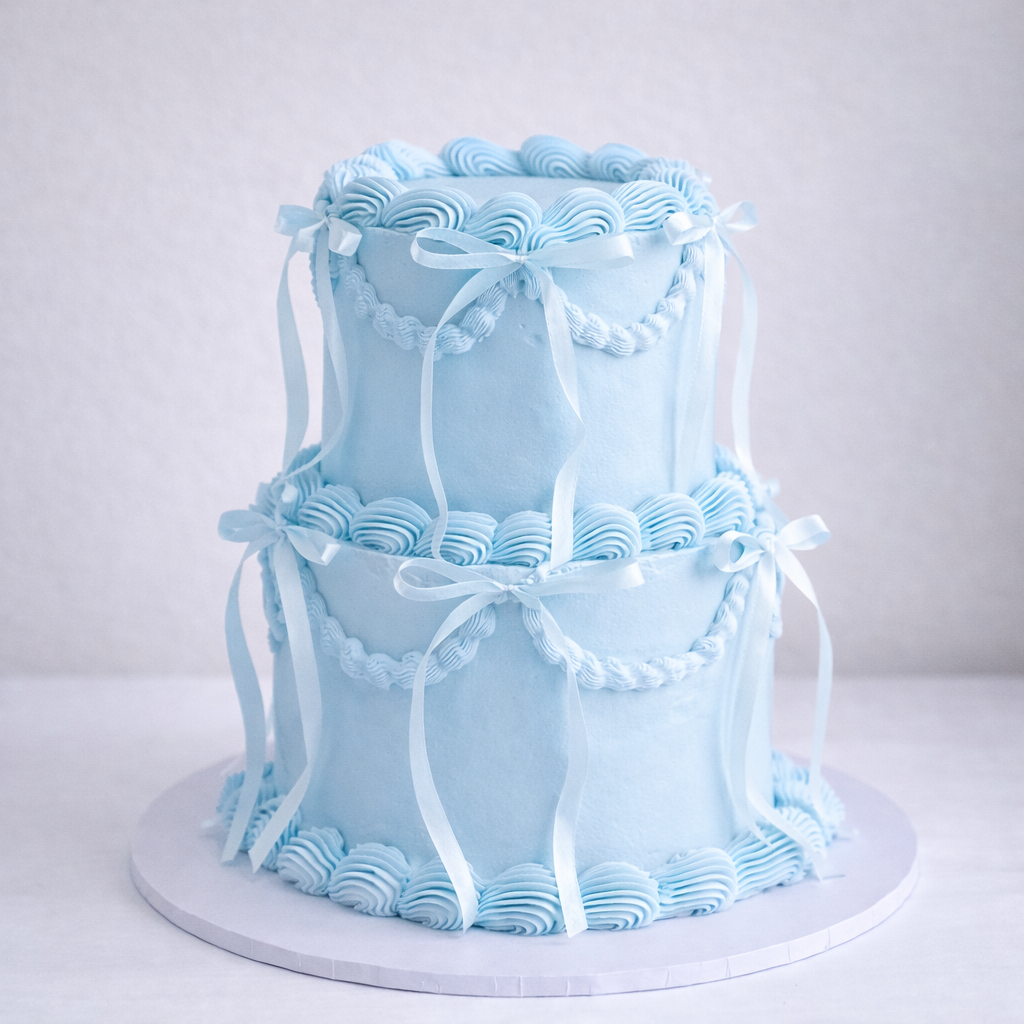 Vintage Buttercream Celebration Cake with Bows – Up to 2-Tier (Next Day)