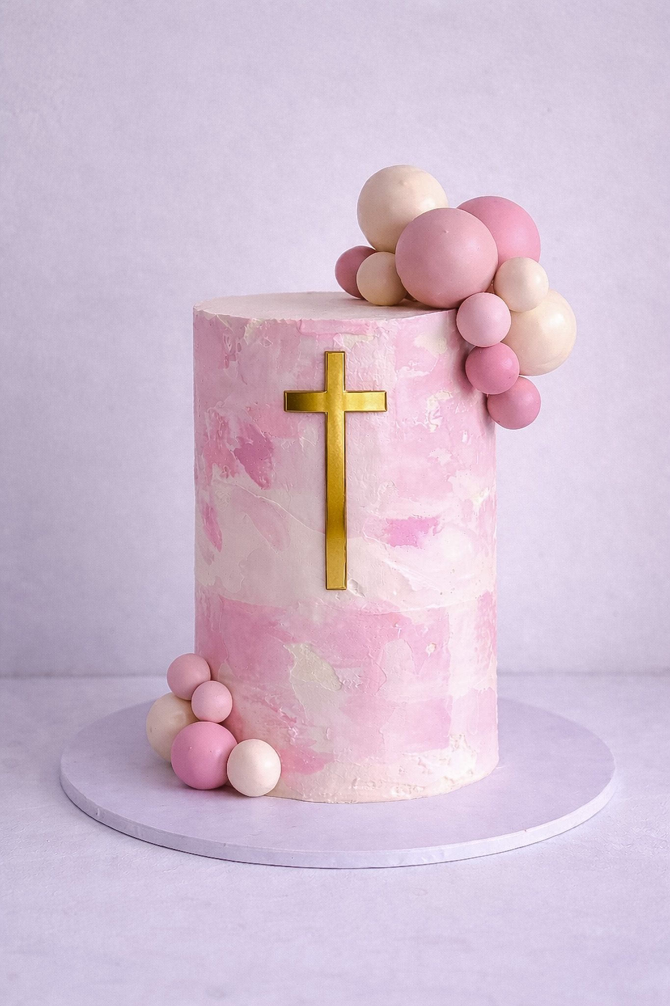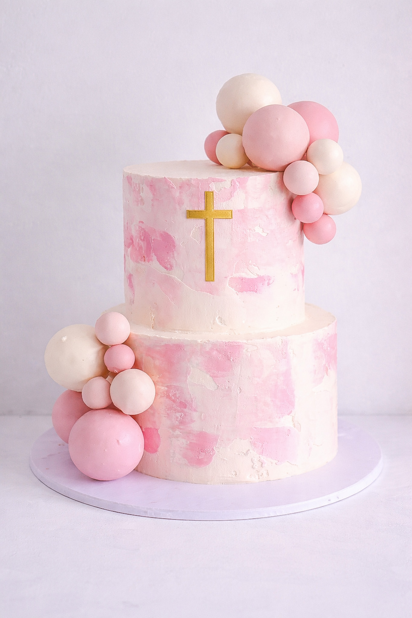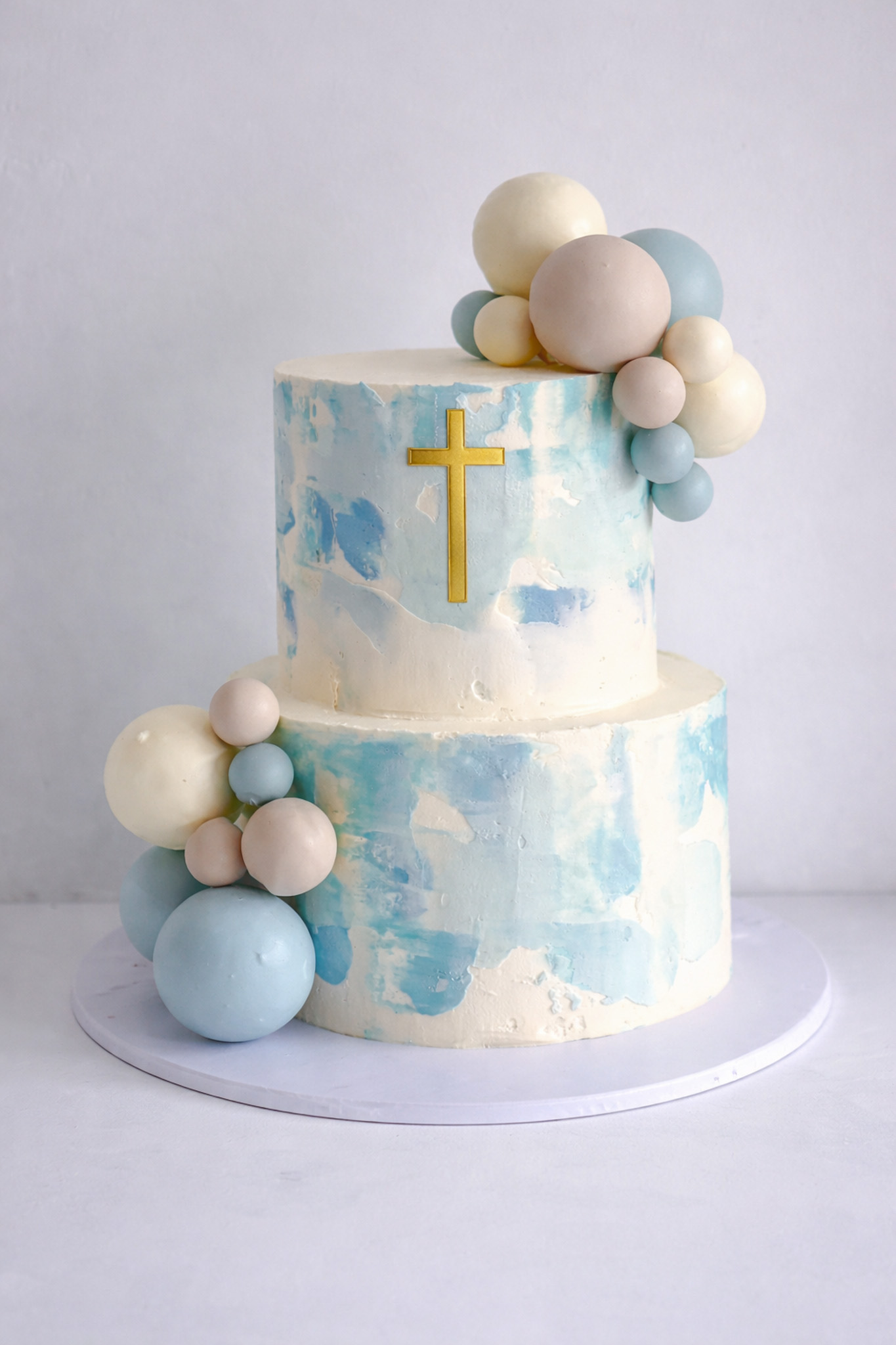 Watercolour and Sphere Cascade Communion cake